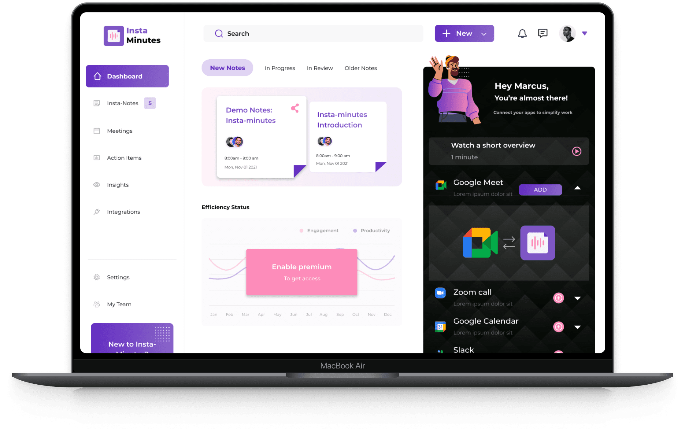 Insta-minutes faced the challenge of simplifying the process of capturing meeting minutes. Traditional tools only provided raw transcripts, leaving users with lengthy, unorganized content. The core issue was the need for a more efficient, concise, and actionable summary that could enhance team engagement and productivity.