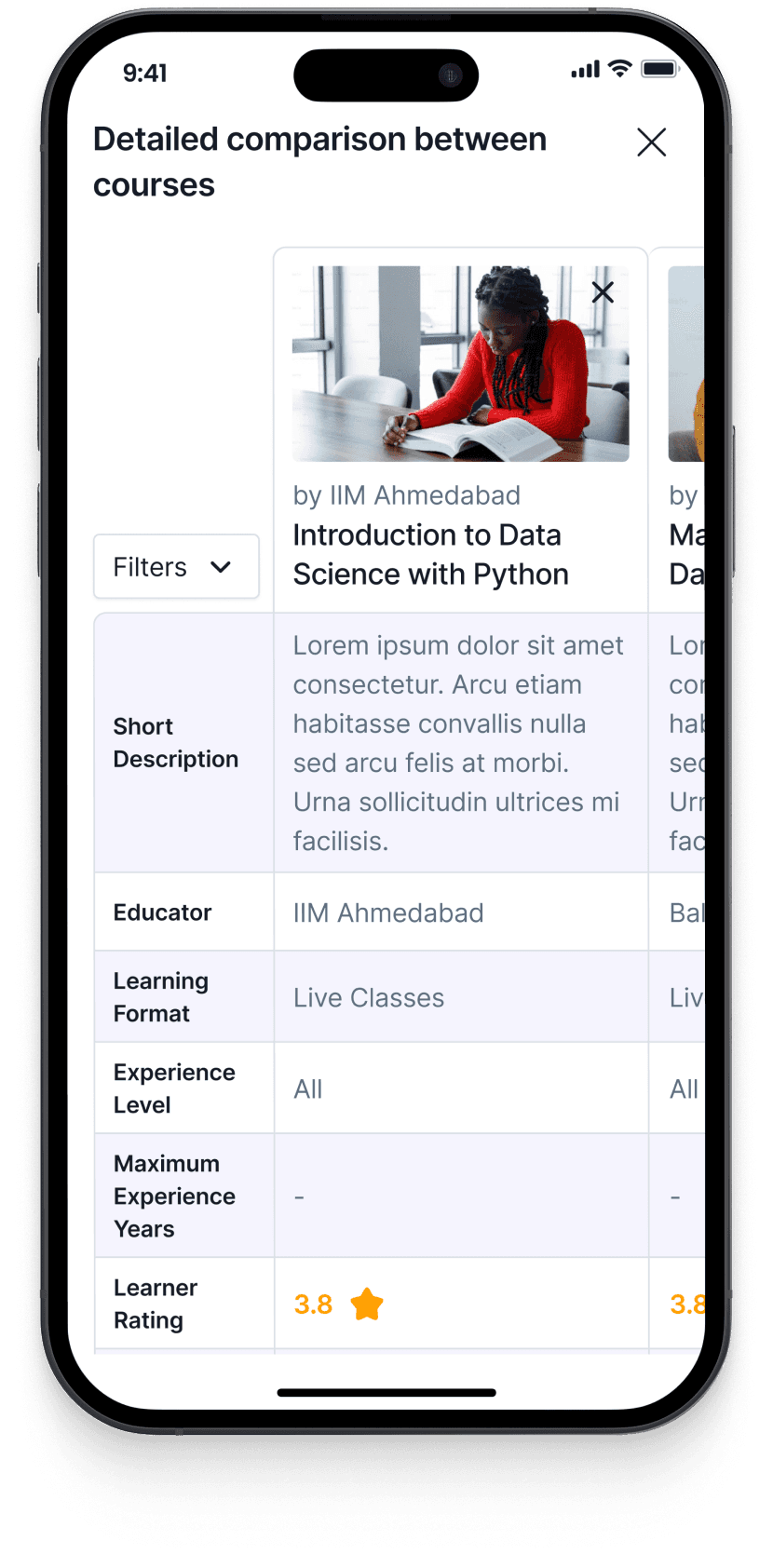 Simplify Course Discovery: Incorporated intuitive filters, categories, and recommendations to help users find the perfect course effortlessly.
