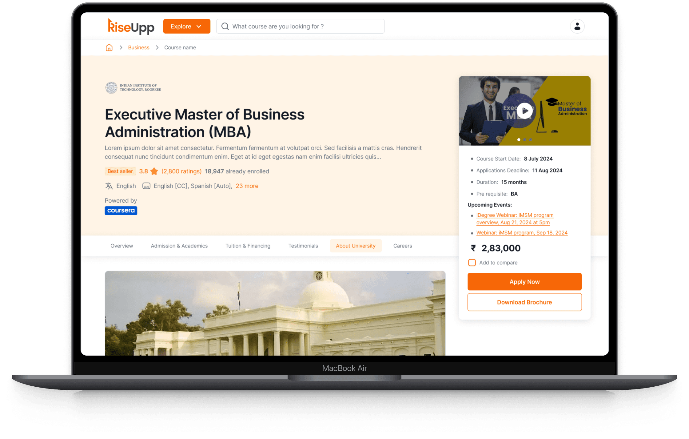 Optimized Enrolment Process: Simplified the enrolment journey, from course selection to checkout, ensuring a hassle-free experience.